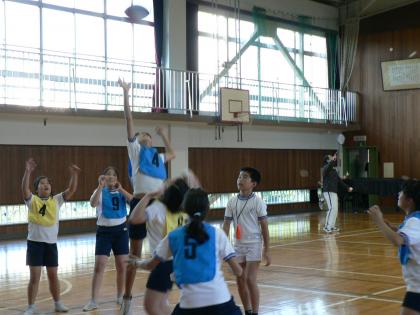 バスケットボールクラブは19人、6年生が5人、5年生が14人です。今年は女子の人数が多く男子は3人です。春から活動をしてきましたが、シュートやパスの腕前も全員かなり上達しました。今はチームに分かれ試合を楽しんでいます。点数、シュートの記録なども子どもたちでしています。