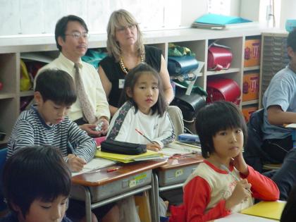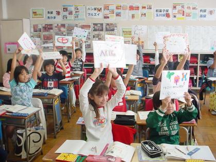 カナダからいらしたクリス先生は、小学校で8歳のクラスを担任しているそうです。カナダの子どもたちが日本に興味を示し、一人一通ずつ手紙を書いてくれました。イラスト入りの封筒の中には、ハロウィンで仮装した子どもたちの写真や、プレゼントも入っていてみんな大喜び。海の向こうにできた友だちに、今度はどんな返事を書くのか楽しみです。