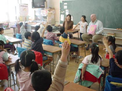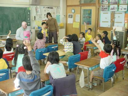 1年生は英語活動の時間が大好きです。「あなたの名前は何ですか」の質問に一人一人が答えていました。その後、ゲームや歌を楽しく学びました。