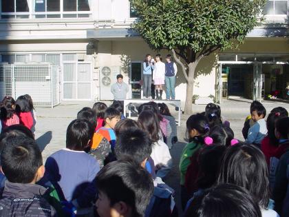 校長先生は「防犯ブザーを忘れないように」という注意のあと、冬至の意味、冬至のゆず湯、冬至のカボチャ、「冬至、冬なか、冬はじめ」について話をされました。代表委員の児童から「もちつき大会のボランティア活動」の報告がありました。この活動は1月の朝日小学生新聞に紹介される予定です。
