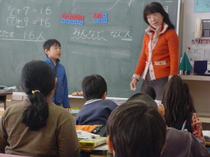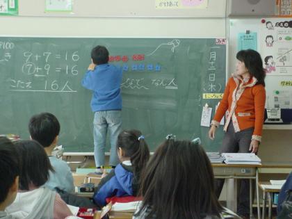 3学期最初の算数の時間。文章題の解法を「たすのかな、ひくのかな。」と言葉や数に注目して立式し、解いていく学習の復習をしました。大切な言葉には線を引き、問題の意味を順序立てて考え、解き方を進んで発表したり、おはじきを使って説明したりすることができました。「いろんな考えが分かって、なんだかわくわくしてきたよ!」「うん、楽しい!」等のつぶやきも聞こえる中、共に学ぶ楽しさを味わいつつ、はりきって学習することができました。