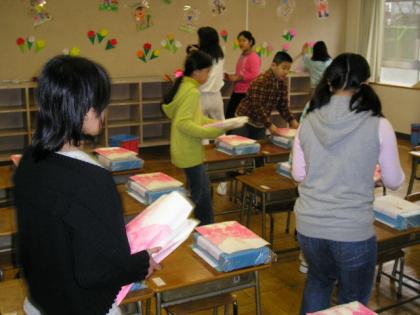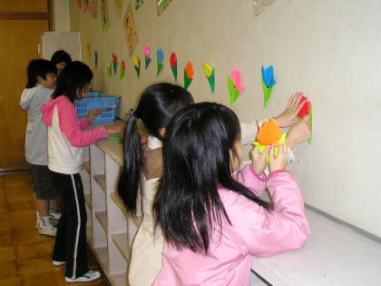 4月5日(水)新6年生が、明日入学してくるかわいい1年生を歓迎する気持ちを込めて、教科書や手紙などを袋に入れたり、教室をきれいに飾り付けたりしました。みんな自分から進んで仕事に取り組み、高学年らしさを発揮していました。