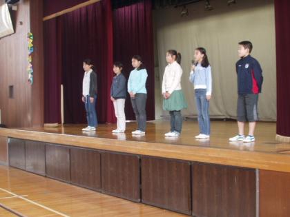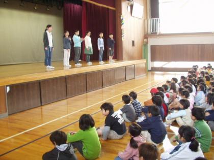4月13日(木)児童集会で前期委員会の委員長になった6年生が、委員長としての今後の抱負などを発表しました。これからの活躍を期待しています。