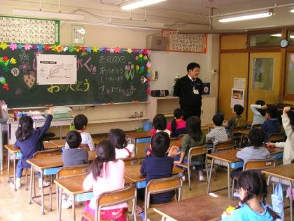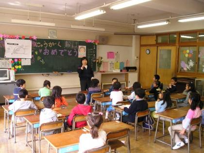 ピカピカの一年生も下目黒小学校に入学して一週間がたちました。学校ではどんなお勉強をしているのでしょうか。道徳の時間には「おあしす」というあいさつのおまじないを学びました。「お…おはよう・あ…ありがとう・し…しつれいします・す…すみません」とても大切な4つの言葉です。実際に使う場面を想定して練習しました。どの子も上手に挨拶することができました。算数、体育、国語と他の学習もスタートし、教科書を興味深く読んでいます。これからの勉強が楽しみなようです。今後も子どもたちの意欲を生かしながら、学習を進めていきたいと思います。