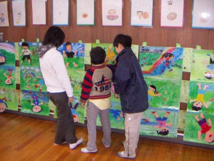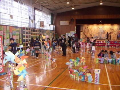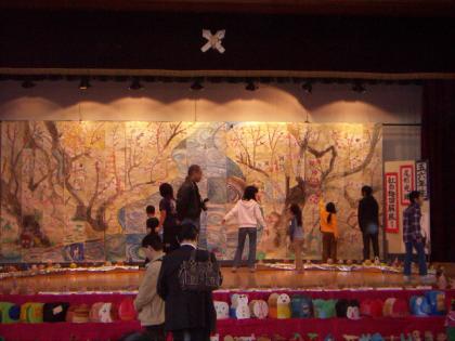 1校時体育館では6年−1年の縦割り鑑賞がおこなわれていました。