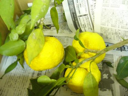 子どもたちは朝礼のときに校長先生から見せてもらった枝付きのゆずや葉つきの大根を見て、