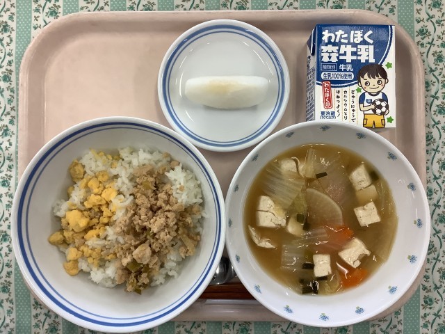 令和7年9月30日(火)の給食 公開日 2025/09/30 更新日 2025/09/30 八雲ランチ 献立は二食丼、具だくさんみそ汁、梨(秋月)、牛乳です。梨の品種は秋月です。とても甘さが強くおいしい梨でした。やっと涼しくなり、食べ物からも秋を存分に感じられました。人参、大根:北海道長葱:青森生姜:高知白菜、梨:長野こねぎ:福岡鶏肉:鹿児島 いいね(0)