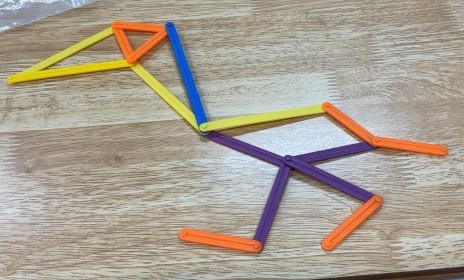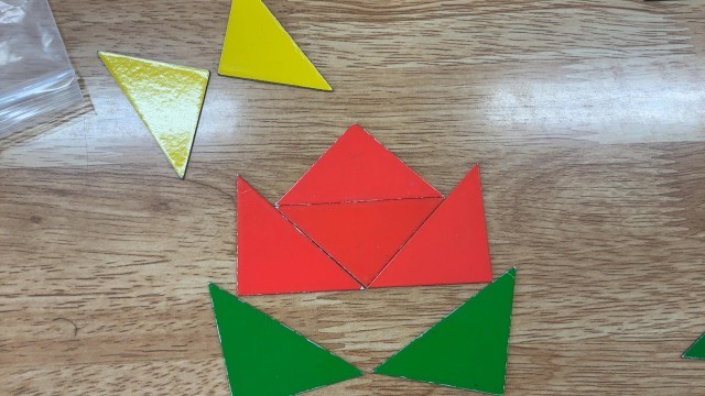 算数で形づくりの学習に取り組んでいます。色板や色棒を組み合わせ、個性豊かな形を作ることができました。