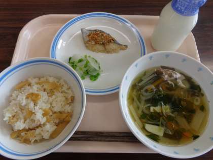 4月8日の給食 公開日 2016/04/09 更新日 2016/04/09 八雲ランチ 今日の給食:たけのこごはん すまし汁 魚のピリ辛焼き かぶの即席漬け 牛乳 産地 たけのこ:鹿児島県 にんにく:青森県 しょうが:高知県 長ねぎ:埼玉県 玉ねぎ:北海道 大根:千葉県 かぶ:千葉県 三つ葉:千葉県 りんご:青森県 サゴシ:韓国 いいね(0)