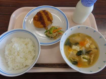今日の給食:ごはん みそ汁 ポテトコロッケ