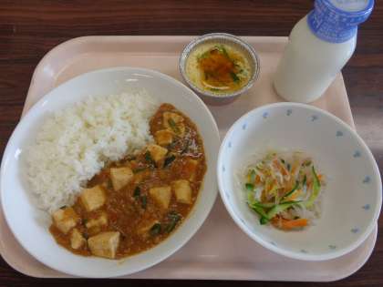 4月25日の給食 公開日 2016/04/25 更新日 2016/04/25 八雲ランチ 今日の給食:ごはん 麻婆豆腐 春雨サラダ 中華風茶碗蒸し 牛乳 産地 しょうが:高知県 にんにく:青森県 にんじん:徳島県 玉ねぎ:北海道 長ねぎ:千葉県 ニラ:長崎県 きゅうり:宮崎県 小松菜:埼玉県 もやし:栃木県 鶏卵:秋田県 豚肉:鹿児島県 えび:ベトナム いいね(0)