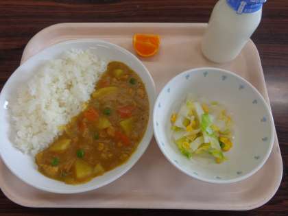 4月27日の給食 公開日 2016/04/27 更新日 2016/04/27 八雲ランチ 今日の給食:チキンカレーライス 大根サラダ カラマンダリン 牛乳 産地 にんにく:青森県 しょうが:高知県 玉ねぎ:北海道 にんじん:徳島県 じゃがいも:鹿児島県 大根:千葉県 キャベツ:神奈川県 カラマンダリン:愛媛県 鶏肉:徳島県 いいね(0)