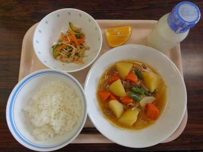 6月1日の給食 公開日 2016/06/02 更新日 2016/06/02 八雲ランチ 今日の給食:ごはん 肉じゃが 野菜のごま酢和え 甘夏みかん 牛乳 産地 じゃがいも:長崎県 にんじん:千葉県 玉ねぎ:香川県 さやいんげん:千葉県 もやし:栃木県 きゅうり:群馬県 甘夏みかん:静岡県 豚肉:岩手県 いいね(0)