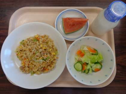 6月2日の給食 公開日 2016/06/03 更新日 2016/06/03 八雲ランチ 今日の給食:レタスチャーハン はちみつドレッシングサラダ すいか 牛乳 産地 にんじん:千葉県 長ねぎ:千葉県 レタス:長野県 きゅうり:群馬県 キャベツ:東京都 すいか:群馬県 鶏卵:秋田県 豚肉:鹿児島県 いいね(0)