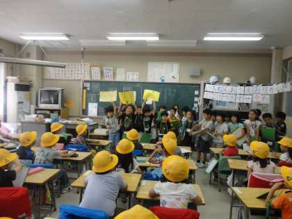 6月2日の1・2校時に生活科の学習で学校探検をしました。1年生と2年生の「なかよしはん」で、仲良く手をつないで校内をまわりながら、2年生が各教室の紹介をしました。「1年生から、優しくしてもらってうれしかったといってもらえてよかったです。」「いっしょに手をつないで、ゆっくり歩いてくれてありがとうって言われました。うれしかったです。」と活動の振り返りをしました。