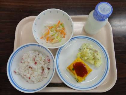 6月9日の給食 公開日 2016/06/09 更新日 2016/06/09 八雲ランチ 今日の給食:梅ごはん チーズオムレツ 三色サラダ カルボナーラポテト 牛乳 産地 玉ねぎ:愛知県 にんじん:千葉県 大根:青森県・東京都 キャベツ:神奈川県 じゃがいも:長崎県 にんにく:青森県 パセリ:長野県 鶏卵:秋田県 いいね(0)