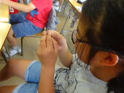 針に糸を通して、玉結びしました。