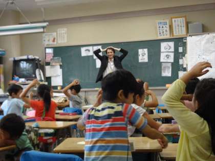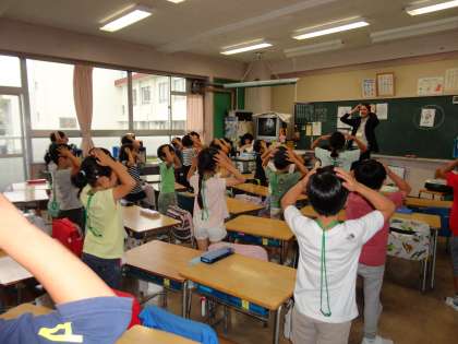 「Head,Shoulders,Kneeds,And,Toes」の歌を元気いっぱいに歌った後、体の部分についての言い方を教えていただき、その言葉を使ってゲームをしました。