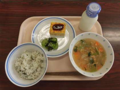 7月14日の給食 公開日 2016/07/14 更新日 2016/07/14 八雲ランチ 今日の給食:わかめごはん みそ汁 ハムとキャベツの卵焼き きゅうりとわかめの酢の物 牛乳 産地 キャベツ:長野県 長ねぎ:千葉県 大根:青森県 玉ねぎ:香川県 小松菜:東京都 にんじん:千葉県 きゅうり:東京都 鶏卵:秋田県 いいね(0)