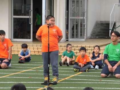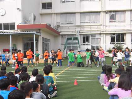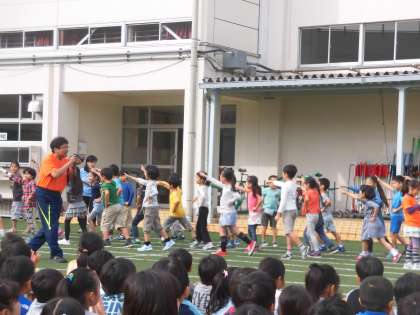 全校児童を代表して、2年生が3くみのみんなと一緒にダンスをしました。