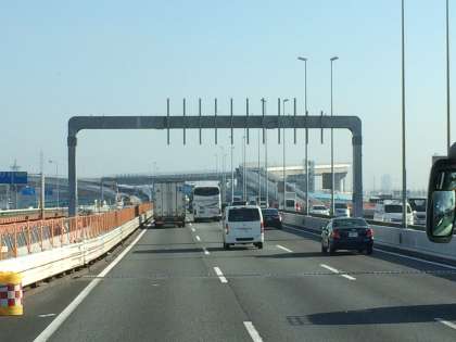 バスは、高速道路を快走中。