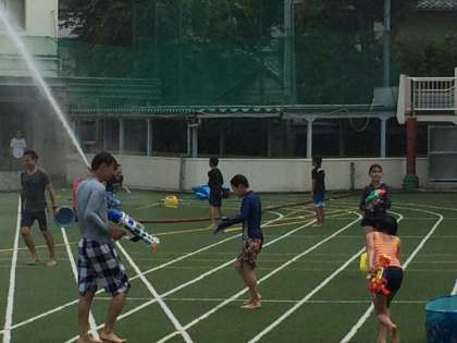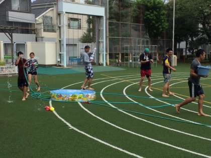 今日は、住区主催の校庭1日キャンプです。まずは、水遊びでスタートです。