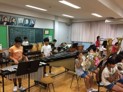 金管バンドクラブは、夏休みも練習を重ね、日に日に上達しています。