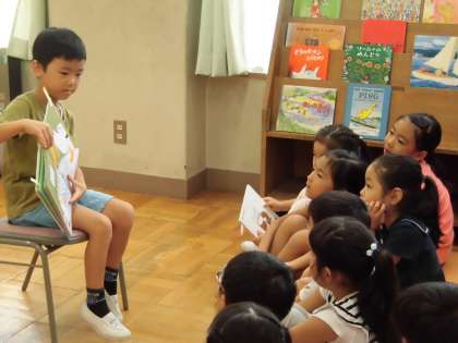 図書の時間に、自分の好きなほんの紹介をしました。好きな場面とそのわけを話しました。