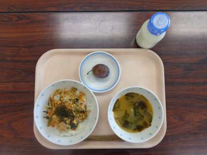 9月5日(火)の給食 公開日 2017/09/05 更新日 2017/09/05 八雲ランチ 今日の給食:ツナと豆腐のそぼろ丼 みそ汁 プルーン 牛乳 産地 にら:山形県 もやし:栃木 糸三つ葉:静岡県 人参:北海道 玉ねぎ:北海道 小松菜:埼玉県 プルーン:長野県 木綿豆腐:愛知・佐賀 鶏卵:栃木県 いいね(0)