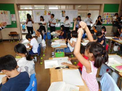 4年2組で国語の「一つの花」の研究授業をしました。「作者は、どんな思いで『一つの花』という題名とつけたのか題名のひみつをさぐろう。」という学習課題を追究してきました。「一つ」というキーワードを基に「一つ」にこめられた登場人物の思いを読みとったり、隠れた「一つ」を見付けたり、主体的に学習に取り組んでいました。