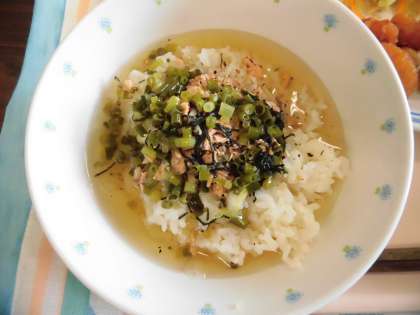 冷やし茶漬けはかつお節と昆布でとった出汁を冷やしてご飯の上にかけて食べます。