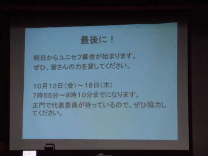 今日はユニセフ集会がありました。