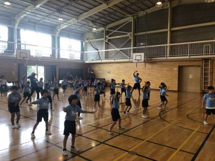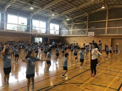 プロダンサーチーム演舞麗夢の皆さんから学ぶダンス教室も今日が最終回です。今日は1.2年生がいろいろなステップを学び、楽しみながらダンスを完成させました。あまりの習得の速さにビックリでした!