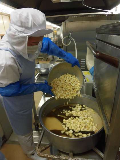 十三夜は十五夜の次にきれいな月が見られる日とされ、昔から月を眺め楽しむ習慣があります。十三夜には栗や豆を供えることから「栗名月」や「豆名月」と呼ばれます。そこで今日は季節の栗を使った「栗おこわ」を作りました。栗は熊本県産の生栗を使いました。ご飯と一緒に炊いた栗は甘味があり、子どもたちも「栗が甘かったよ!」「栗がおいしい」と季節の味をしっかり味わっていました。