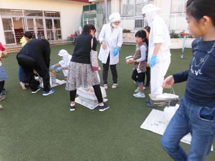 青空給食の片付を5・6年生が中心になって行いました。