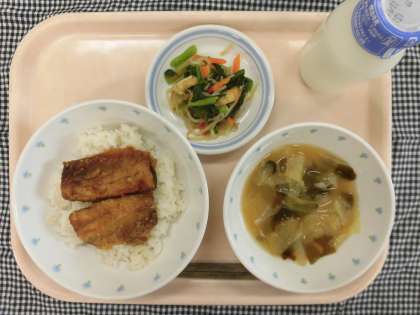 11月5日(月)の給食 公開日 2018/11/06 更新日 2018/11/06 八雲ランチ 今日の給食:さんまの蒲焼丼 煮浸し キャベツの味噌汁 牛乳 しょうが:高知県 小松菜:東京都 もやし:栃木県 人参:北海道 キャベツ:長野県 玉ねぎ:北海道 さんま:北海道 油揚げ:佐賀・新潟 わかめ:北海道 いいね(0)