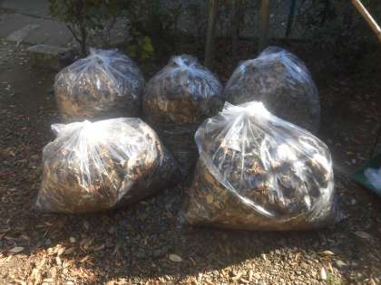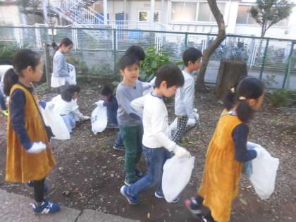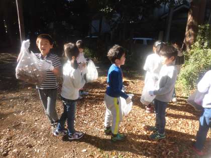 奉仕活動の一環で、氷川神社の落ち葉ひろいをしました。