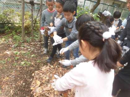 さつまいもの準備が終わったら、氷川神社に移動しました。