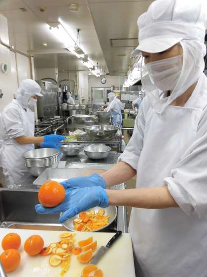 紅マドンナは愛媛県の柑橘です。皮はとても濃いオレンジ色をしていて、皮は薄く、食べるとゼリーのようななめらかな食感が特徴です。「べに・・・まどんな?」と名前はなかなか覚えにくいようでしたが、「すごくおいしかった!」と好評でした。これから様々な柑橘が旬を迎えます。大人でもかんきつ類は全て「みかん」とまとめてしまいがちですが、日本各地で生産されている色々な柑橘を給食で紹介していきたいと思います。