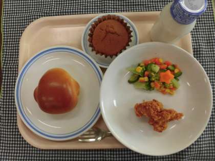 今日の給食:バターロールパン パリパリチキン もみのきサラダ