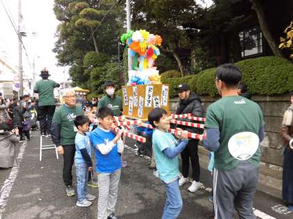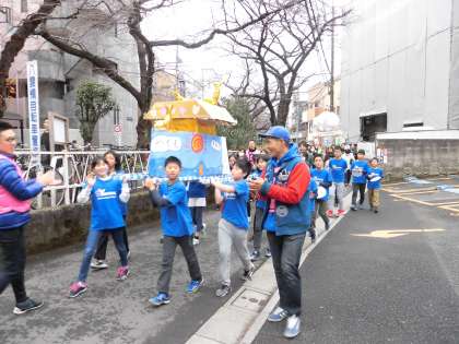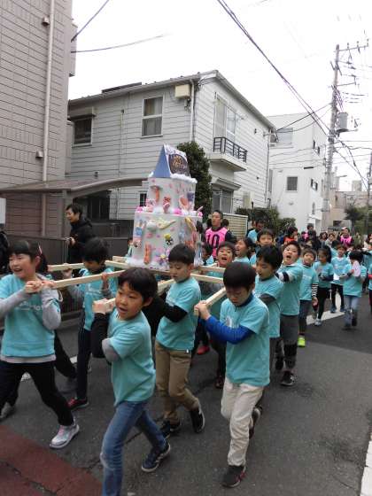 小学校の周りをみこしを担いでまわりました。