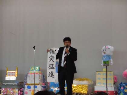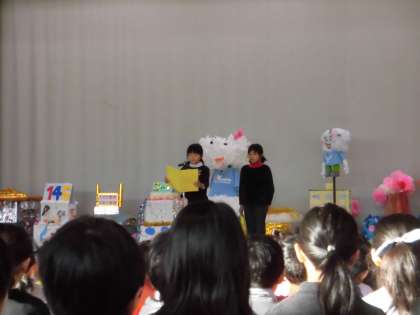 後期後半始めの会では、校長先生から猪年に関係する言葉について話がありました。