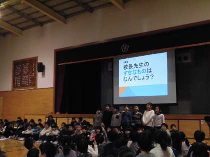 145周年記念集会 公開日 2019/01/15 更新日 2019/01/15 3年 11日金曜日に、145周年記念集会がありました。3年生は校長先生にも参加していただき、校長先生の好きな所をクイズにしました。忘れられない145周年記念集会になりました。 いいね(0)