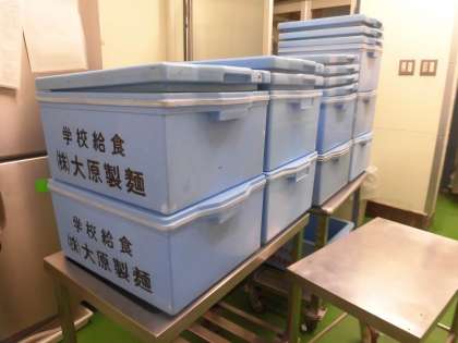 今回は今から50年ほど前の昭和45年頃に給食に出ていた「ソフト麺」です。ソフト麺は一人分ずつ袋に入っており、今の給食ではスパゲッティの時にはスパゲッティの麺、うどんの時はうどんの麺を使っていますが、当時はスパゲッティやうどんの時には「ソフト麺」が提供されていました。