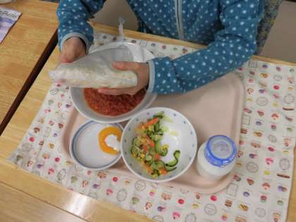 いつもと違う麺に、特に1年はびっくりしていました。ソフト麺の柔らかい麺が低学年には食べやすかったようで、「ソフト麺また食べたい!!」「リクエスト給食にソフト麺書きたい!」と熱いリクエストが出ました。