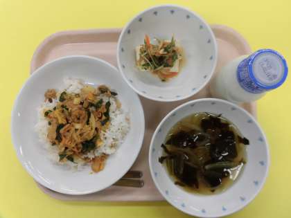 今日の給食 キムチ丼 ごまだれ豆腐サラダ