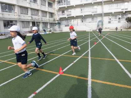 7日(木)の3校時に持久走記録会を行いました。これまでの積み重ねの成果を発揮して、みんな元気いっぱいに4分間走り切りました。