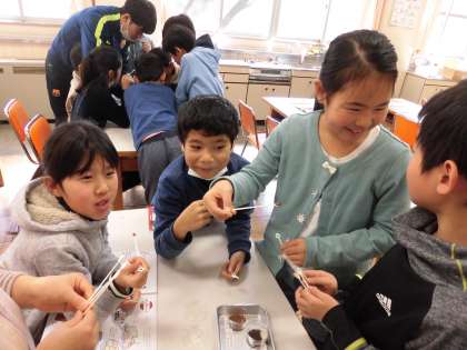 しょうゆを焦がした香りをかがせてもらったり、しょうゆについて知らないことをたくさん教えていただき、子供たちはとても驚いていました。