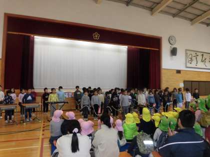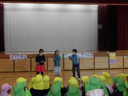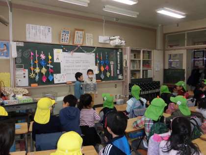 近隣の保育園の年長さん達と交流会をしました。「一年生になってできるようになったこと」や「学校紹介」の発表をしたり、給食の配膳の仕方を優しく教えてあげたりと、張り切って活動しました。
