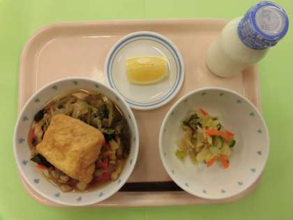 今日は1月11日の「鏡開き」にちなみ、お餅を使った「力うどん」にしました。(地域によっては日にちが違う場合もあります。)